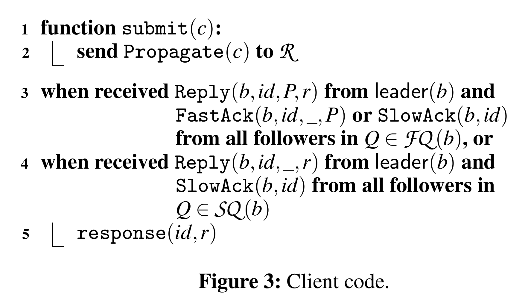 任意副本在收到来自领导者的 FastAck 以及来自某个慢速法定人数中所有跟随者的 SlowAck 后,即可提交该命令。