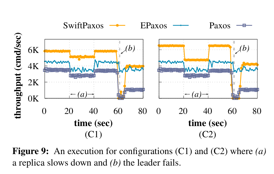 - 当读操作可在任意快速法定人数副本上乐观执行时,SwiftPaxosreads 的吞吐量从 17K ops/s 提升至 19K ops/s。