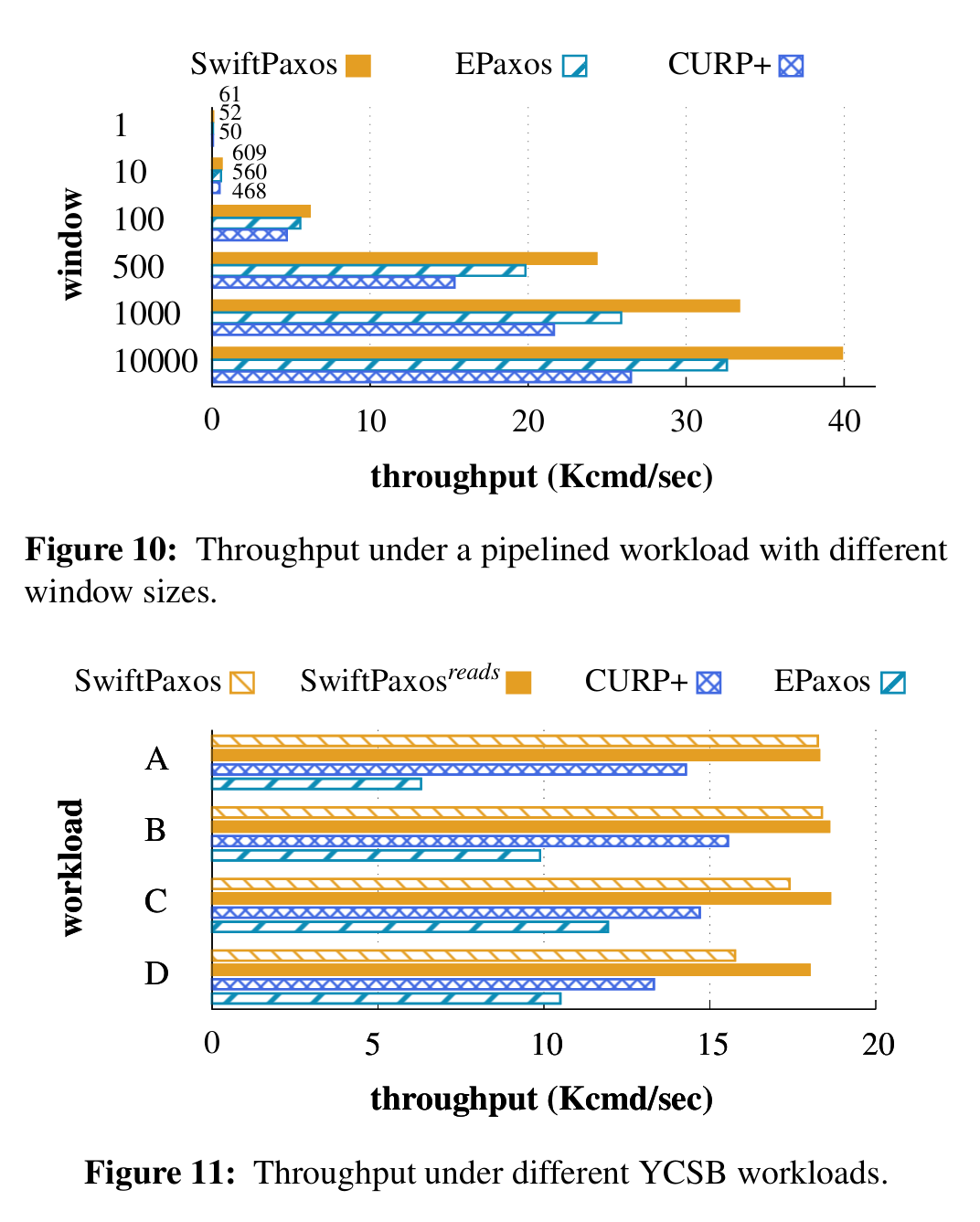 图 11 中的 SwiftPaxosreads 表示:读请求在最近的快速法定人数副本上乐观执行,不一定在领导者上执行(见 §4.4)。